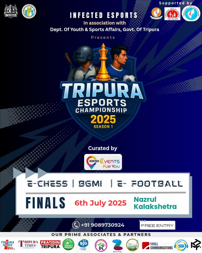 The gaming community in Tripura is all set to witness a historic moment as the first edition of the Tripura Esports Championship kicks off with great anticipation and excitement. Organised to celebrate the emerging digital culture and foster competitive gaming talent in the state, the event will be held at Nazrul Kalakshetra, Agartala, on Sunday, July 6th, from 2 to 9 PM.The Championship is organised by Infected ESports and Curated by Agartala Events For You, a venture of TOTELL.